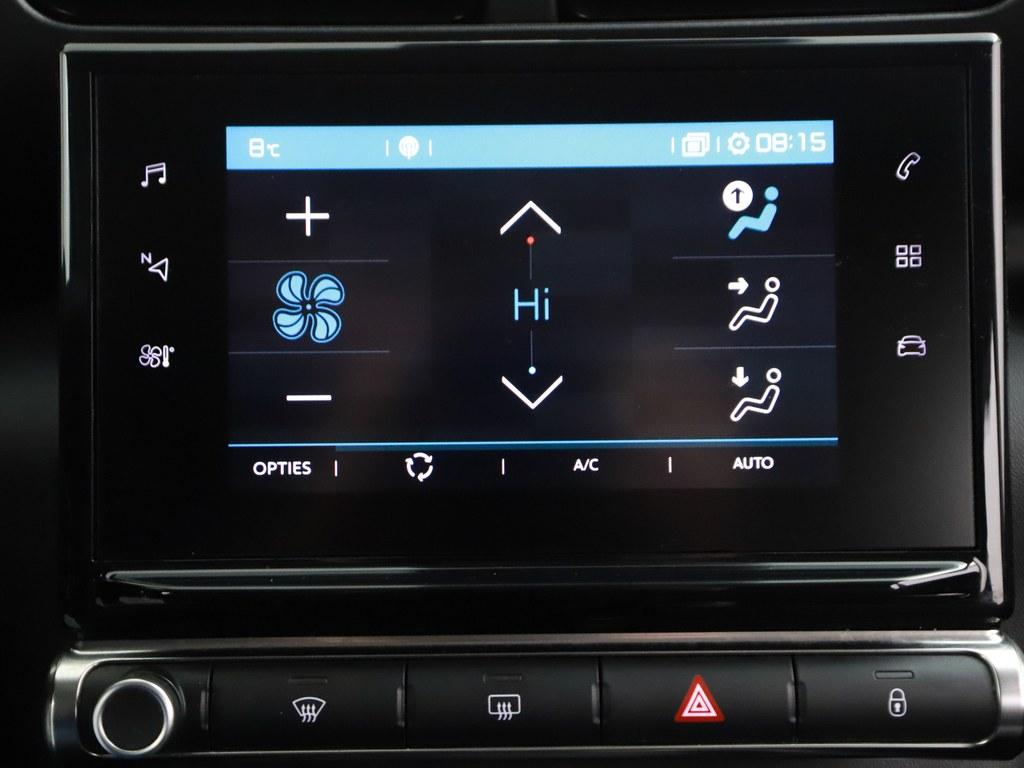 Pech of storing, altijd vervelend. Maar met Connected Services weet u direct wat eraan scheelt. En dus ook wat er moet gebeuren. U bedient het full map navigatiesysteem en het audiosysteem met DAB-radio via knoppen op het stuur, of zelfs met uw stem. Zo kunt u steeds uw aandacht gericht houden op de weg. Zoals van een eigentijdse auto verwacht mag worden, is deze Citroen C3 Aircross voorzien van een draadloze oplaadmogelijkheid voor telefoons. De achteropkomend verkeer waarschuwing is een mooie veiligheidsoptie, die middels sensoren in de gaten houdt wat er onderweg achter u gebeurt. Of het buiten nu warm is of koud, dankzij automatische airconditioning is het binnen altijd behaaglijk. Ook parkeersensoren achter, regensensor, cruise control, automatisch dimmende binnenspiegel, lederen stuur en centrale deurvergrendeling met afstandsbediening horen tot de voorzieningen op deze auto.