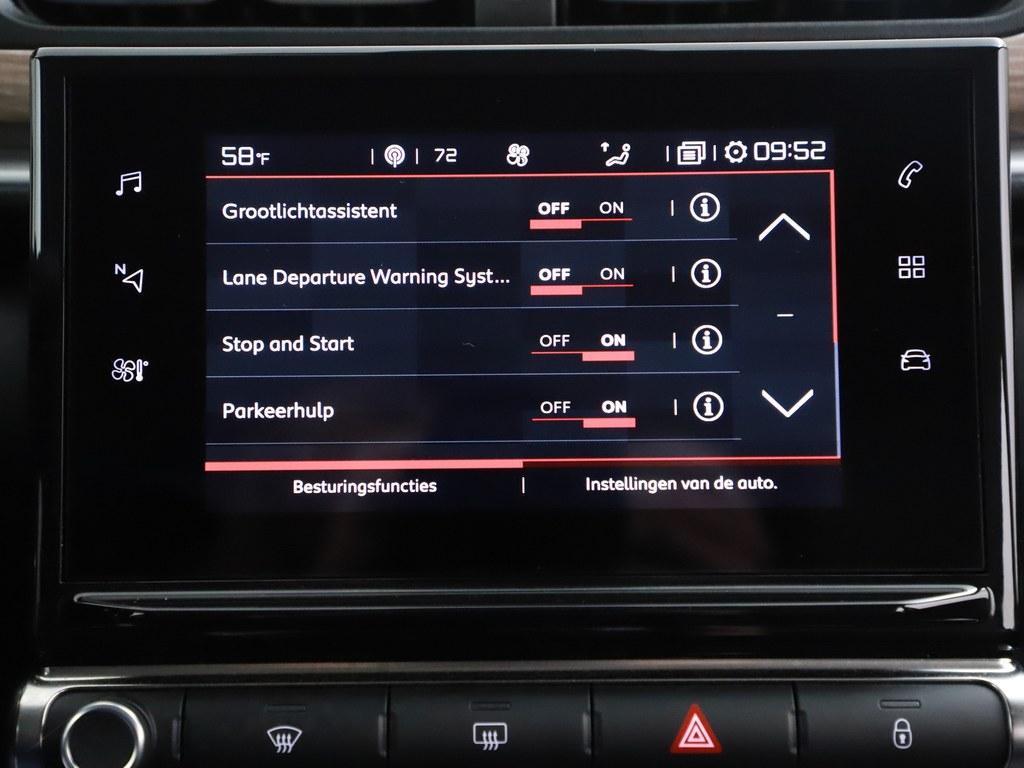 Zoals u mag verwachten van deze Citroen C3 is hij uitgerust met een reeks aan actieve veiligheidssystemen. Dat de auto steeds meer taken van de bestuurder overneemt, merkt u bijvoorbeeld aan het systeem voor verkeersbord-detectie in deze auto. Het Lane-keeping systeem zorgt dat u mooi binnen de lijntjes blijft. Ongemerkt buiten de rijstrook komen is er niet meer bij. Voor meer veiligheid detecteert deze auto het risico van een aanrijding tijdig via de forward collision warning. U bent mede dankzij hill hold functie, brake assist, vermoeidheidsherkenning en bandenspanningcontrolesysteem steeds veilig onderweg.