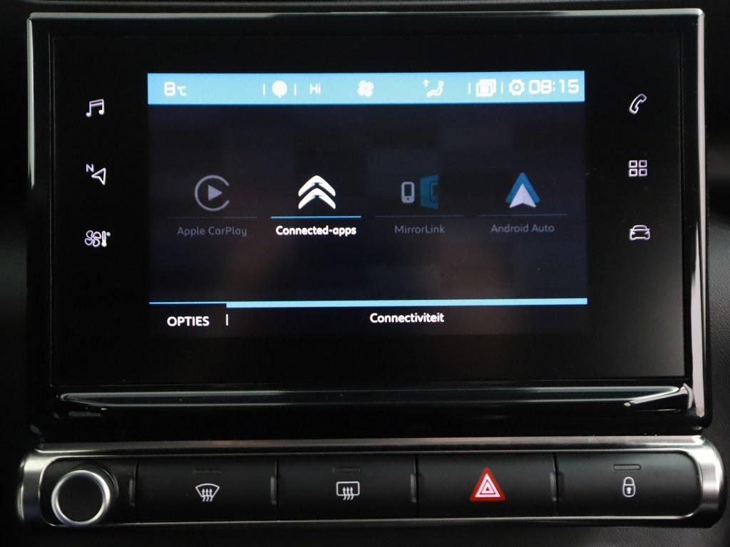 Pech of storing, altijd vervelend. Maar met Connected Services weet u direct wat eraan scheelt. En dus ook wat er moet gebeuren. U bedient het full map navigatiesysteem en het audiosysteem met DAB-radio via knoppen op het stuur, of zelfs met uw stem. Zo kunt u steeds uw aandacht gericht houden op de weg. Zoals van een eigentijdse auto verwacht mag worden, is deze Citroen C3 Aircross voorzien van een draadloze oplaadmogelijkheid voor telefoons. De achteropkomend verkeer waarschuwing is een mooie veiligheidsoptie, die middels sensoren in de gaten houdt wat er onderweg achter u gebeurt. Of het buiten nu warm is of koud, dankzij automatische airconditioning is het binnen altijd behaaglijk. Ook parkeersensoren achter, regensensor, cruise control, automatisch dimmende binnenspiegel, lederen stuur en centrale deurvergrendeling met afstandsbediening horen tot de voorzieningen op deze auto.