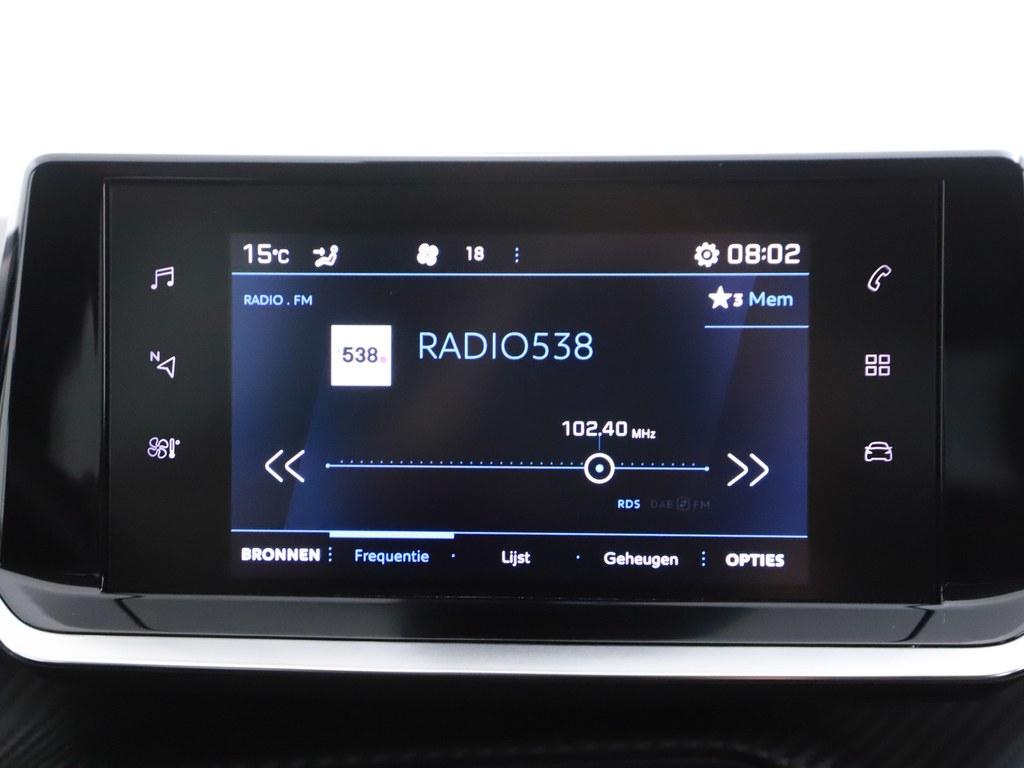 Deze Peugeot 208 is 'connected'. Belangrijke functies worden permanent gemeten en zijn uit te lezen via een speciale app, ook op afstand. Tot de standaard uitrusting van deze auto hoort ook automatische airconditioning. Onderweg wil je zo min mogelijk onnodige of afleidende handelingen verrichten. Vandaar ook de audiobediening op het stuur. Voor een storingvrije radio-ontvangst zorgt de ingebouwde DAB-ontvanger. De parkeersensoren waarschuwen wanneer u te krap inparkeert of dat ene paaltje niet hebt gezien. En deze auto heeft ook regensensor, cruise control, automatisch dimmende binnenspiegel, lederen stuur en centrale deurvergrendeling met afstandsbediening als standaard uitrusting.